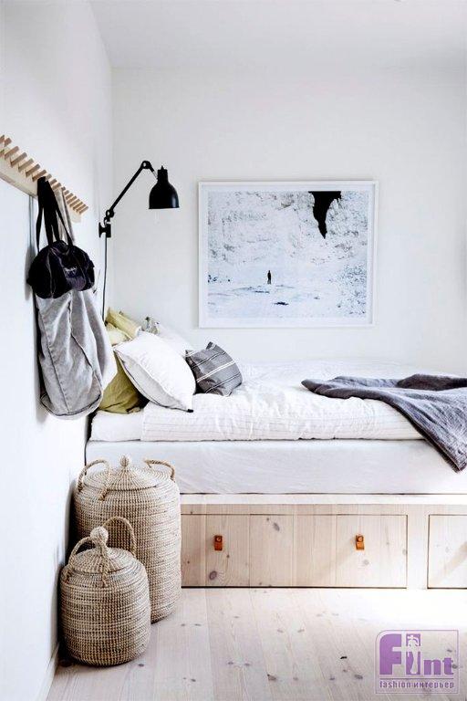 Это одно из самых недооценённых мест хранения в маленьких квартирах. Под кровать можно убрать специальные тканевые боксы, ящики на колесиках, пакеты (в том числе вакуумированные) с объёмными вещами. Под кроватями удобно держать сезонную одежду, запасные одеяла и подушки, обувь, спортивный инвентарь и многое другое. Главное — убирать вещи в закрытые ёмкости, чтобы они не собирали пыль и не пачкались.