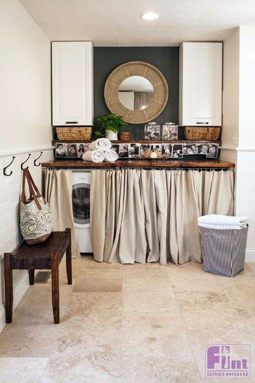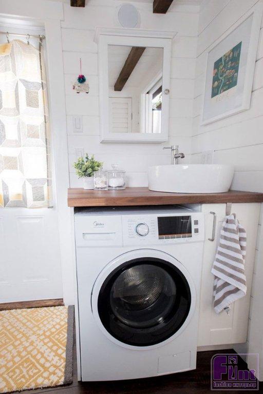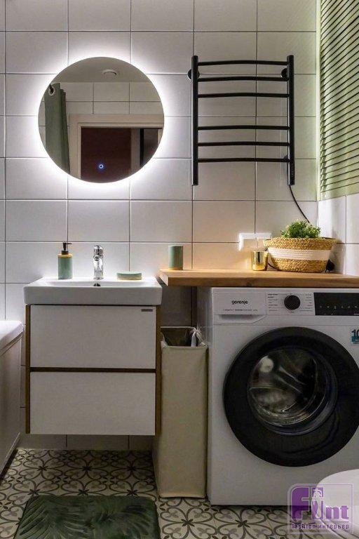 В однокомнатных квартирах санузлы, как правило, небольшие. В итоге встаёт вопрос, где хранить разные мелочи: полотенца для рук, уходовую косметику и т.п. Если вещей немного, выделять под них целый пенал над машинкой нецелесообразно — а иногда для этого и нет места. Решение — закрепить непосредственно над стиральной машиной самую обычную недорогую столешницу. Благодаря этому у вас появится дополнительная поверхность, куда можно аккуратно поставить все необходимое.