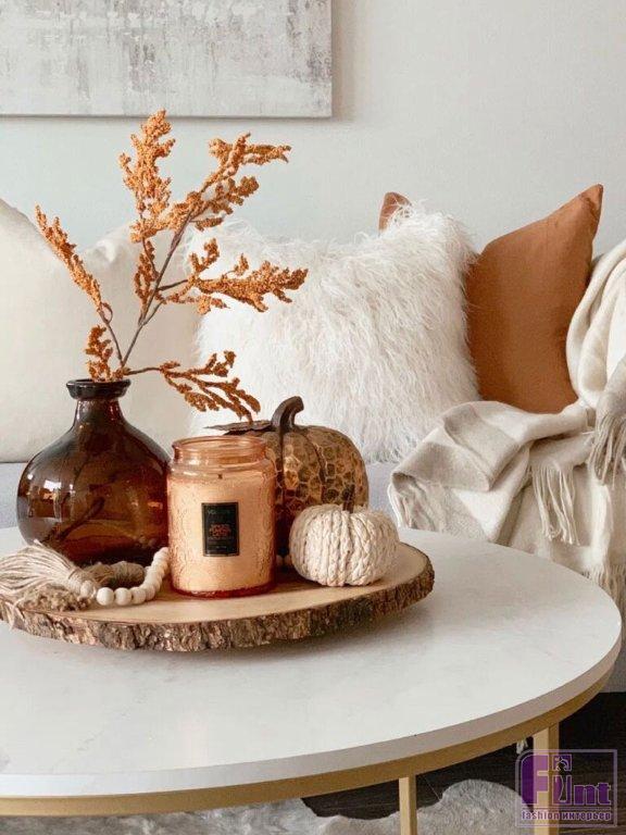 Сезонный декор задаёт настроение и даёт лишний повод романтизировать то или иное время года. Это особенно важно, если вы не любите осень и хандрите в этот период. Добавьте в интерьер буквально несколько деталей: ароматические свечи, букеты из сухоцветов и веток, тематические постеры и сервировку, текстиль в тёплой цветовой палитре. Используйте терракотовые, бежевые, коричневые, золотистые и тёмно-зелёные оттенки.