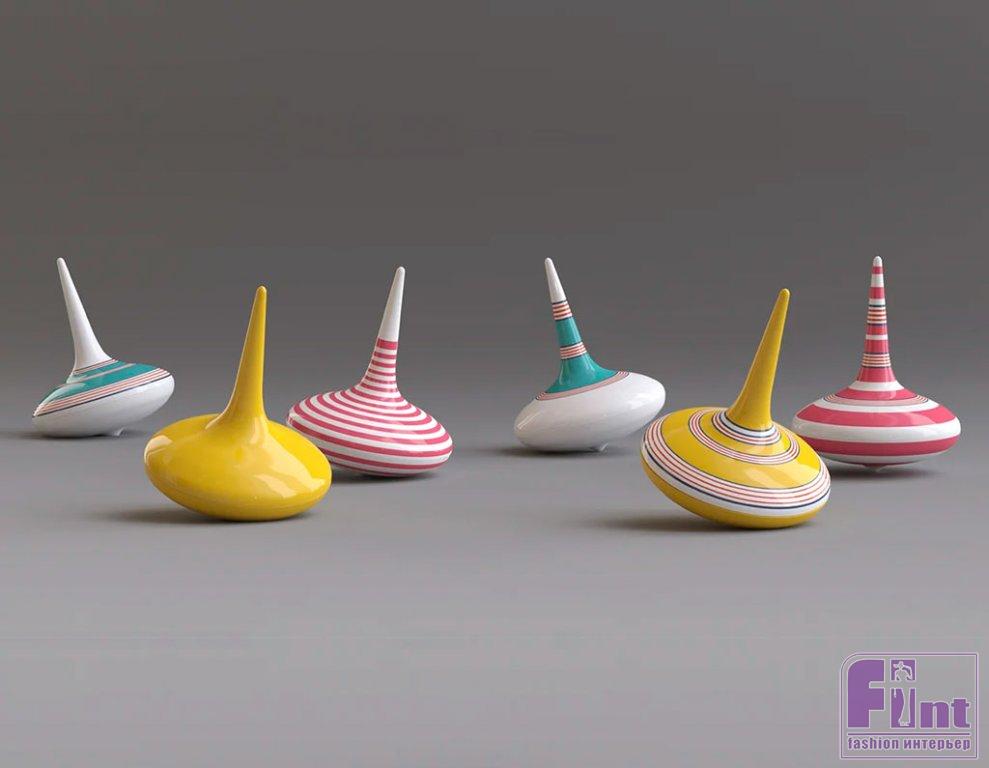 Прообразом формы шкатулки «Юла» стал лаконичный, обтекаемый силуэт детской деревянной игрушки «волчок». Шкатулка является мультимедийной и может вращаться, отсутствие равновесия в статичном состоянии придаёт динамику форуме, которая подчеркнута ярким декором в виде разноцветных полос разной ширины и интенсивности. Крышка «Юлы» многофункциональна, благодаря вытянутой форме на неё можно нанизывать кольца, браслеты, небольшие цепочки. Шкатулка выполнена из высококачественного фарфора и весит 480 грамм. Размеры шкатулки: 138х138×180 мм.