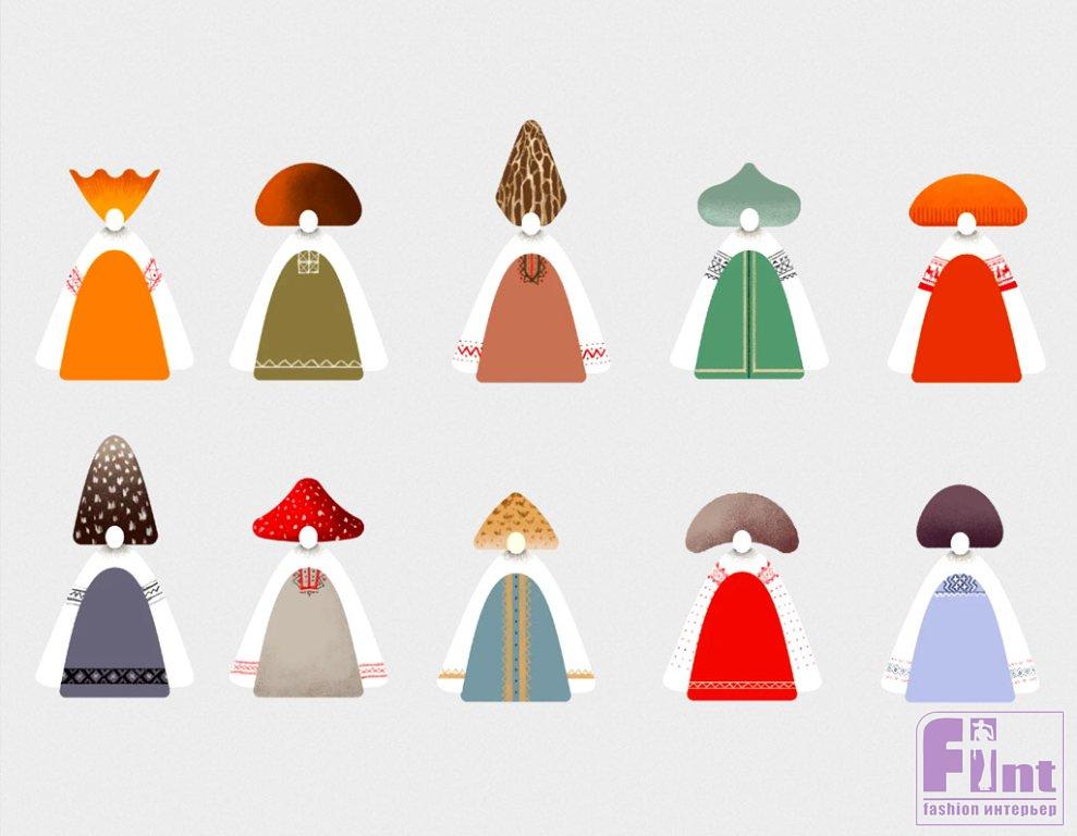 В основу коллекции «Девочки-грибочки», появившейся на свет в 2022 году, легли образы грибов и силуэты русского народного костюма. Так, шляпки грибов были стилизованы под старинный русский головной убор — кокошник. В коллекции представлены 10 дизайнов девочек грибочков, в числе которых: белый гриб, мухомор, сморчок, лепиота, рядовка фиолетовая, цезарский гриб, сыроежка зеленая и другие популярные в народе грибы.