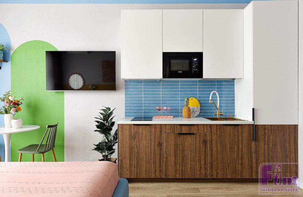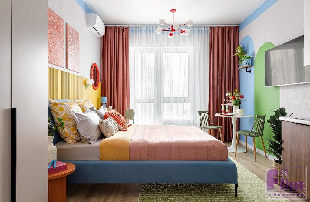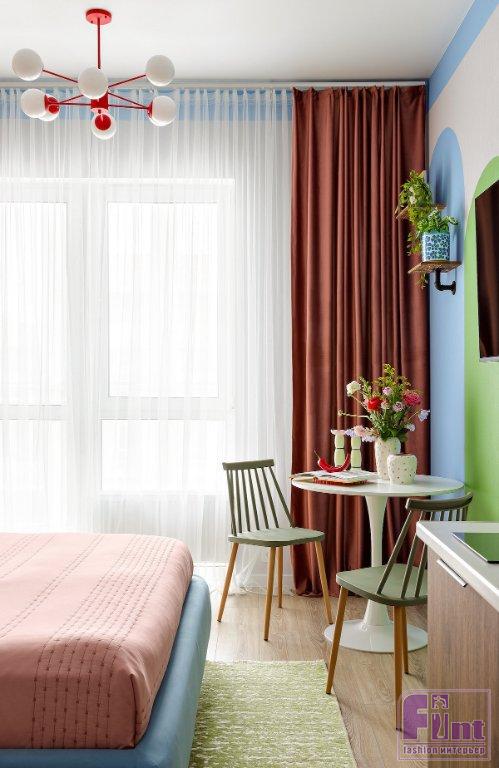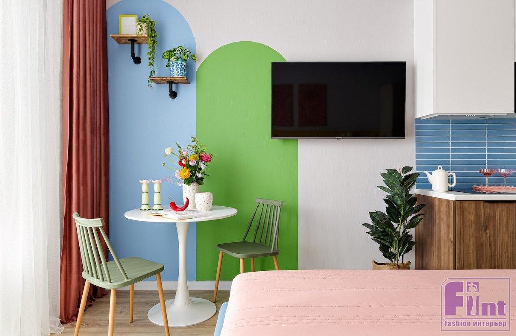 Яркий дизайн интерьера маленькой студии в городе Сочи