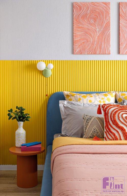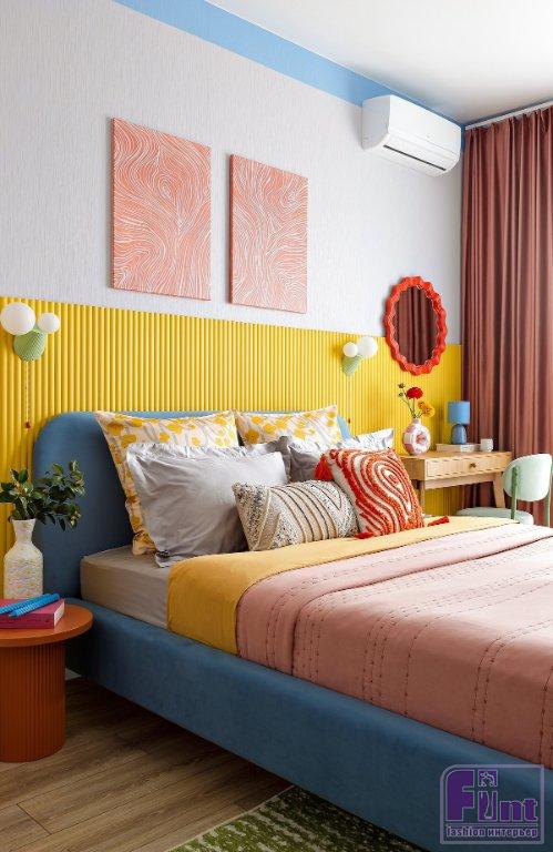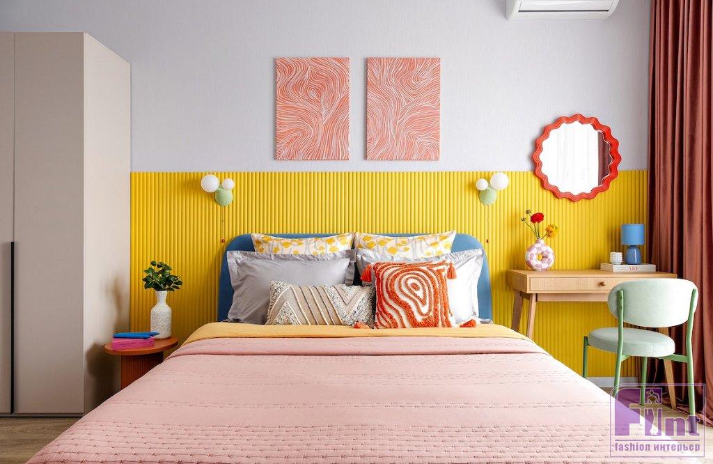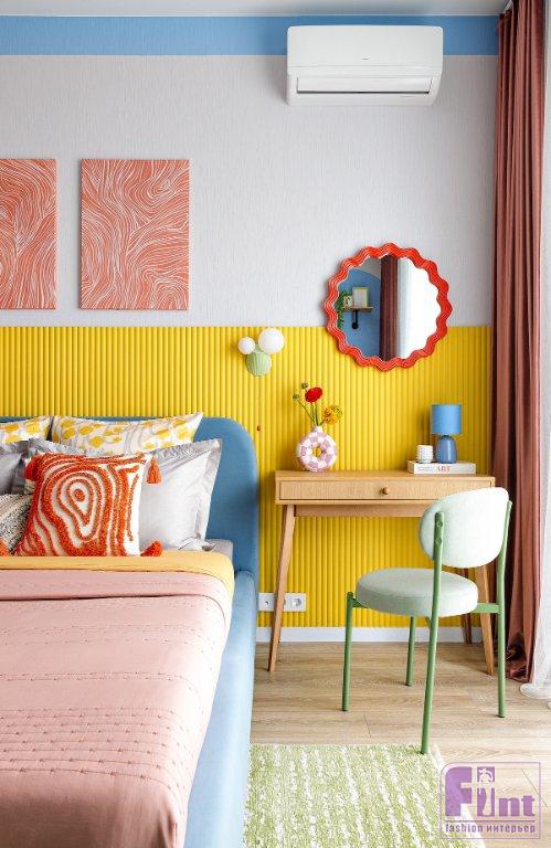 «Формат — студия в жилом комплексе комфорт-класса, и вся концепция проекта была выстроена под конкретный портрет будущего гостя: девушка или парень поколения Z, либо энергичная пара. Люди, которые ценят эстетику и эмоциональный отклик от пространства. Заказчица с самого начала обозначила, что хочет что-то в нашем стиле, с яркой колористикой. Это дало полную свободу. В основе концепции — дофаминовый дизайн, тренд, набирающий силу не только в интерьерах, но и в инфопространстве. В эпоху коротких видео, визуального клипа и мгновенных эмоций цвет становится не фоном, а действующим лицом. Пространство должно «цеплять» с первого взгляда — именно так и был задуман этот проект», — рассказывает Анастасия.