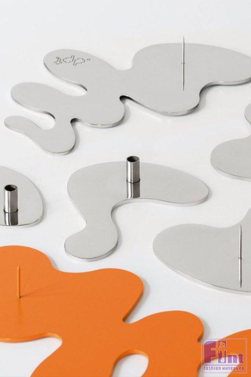 Коллекция objects.dpt включает серию подсвечников Puddle, отражающих момент застывшего движения жидкости. Изделия выполнены из стали, где холодный металл деликатно сочетается с теплом свечного пламени. В этой же серии представлены формовые свечи, повторяющие силуэт капли, и зеркало схожей пластики.