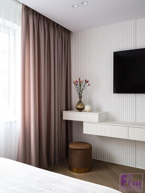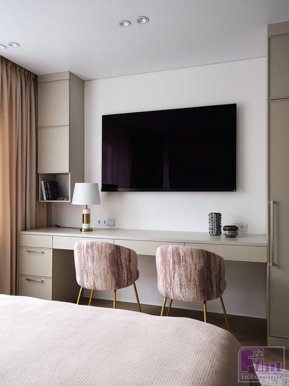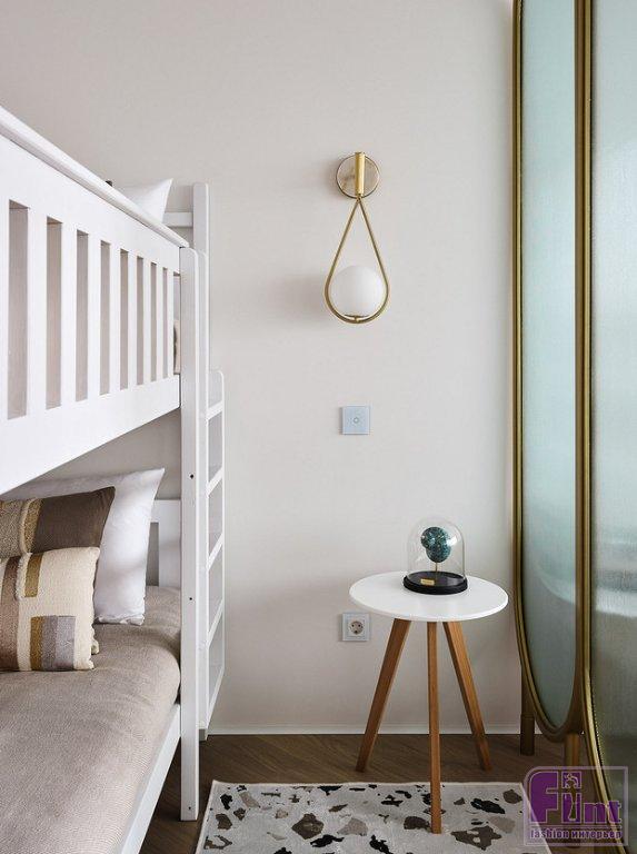 Дизайнер использовала потолочное освещение во всех комнатах, кроме проходной зоны отдыха — там установлены точечные светильники. В комнате повесили красивую люстру. Дополнительные сценарии света стандартные: в комнате родителей и детей — это бра у кровати, в спальне бабушки — подвесной светильник над прикроватной тумбочкой, в ванной комнате подвесы размещены у зеркала, на кухне — подсветка рабочей поверхности и изысканный подвесной светильник над барной стойкой. «Хозяева квартиры вдохновили меня своей добротой и открытостью на создание современного интерьера в нежных нейтральных цветах», — рассказывает о своём проекте автор.