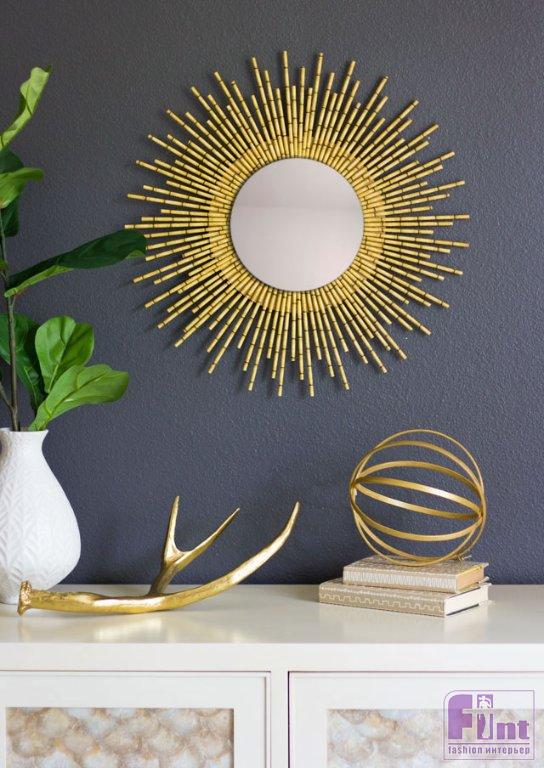 Зеркало-солнце из-за своей необычной круглой формы с лучами выглядит просто потрясающе! Такое зеркало-солнце особенно хорошо смотрится над изголовьем кровати или над комодом. И не забудьте, что бумажные соломинки бывают самых разных цветов и дизайнов, так что вы можете комбинировать их и создавать любой образ для зеркала-солнца, соответствующий цветовой гамме и стилю вашего интерьера.
