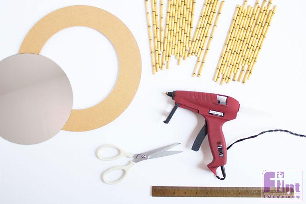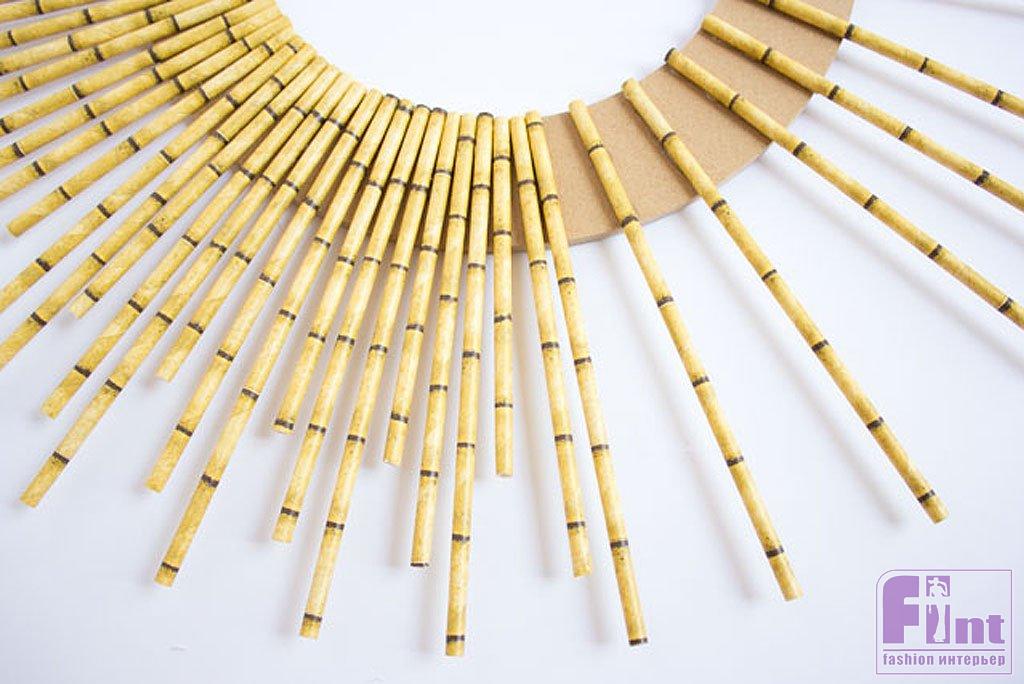 Разнообразные варианты культового зеркала-солнца никогда не выйдут из моды. Сегодня мы научим вас делать это знаменитое зеркало-солнце из самых обычных бумажных трубочек для напитков. Мы уже рассказывали, как сделать такие зеркала, используя круглые деревянные палочки, обрезки керамической плитки, отходы ламината и даже старые мужские галстуки, хотя в последнем случае роль зеркала выполнял часовой циферблат. Сегодня для творчества нам потребуются самые обычные бумажные трубочки для напитков. Вернее, не совсем обычные, а с напечатанным на них принтом, имитирующим бамбуковые стебли.