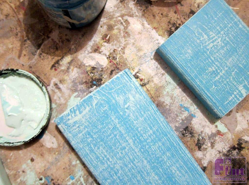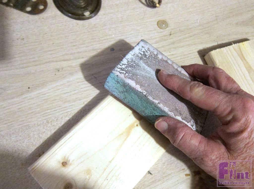 Наверняка у тех, кто занимается рукоделием и творчеством, найдутся обрезки деревянных досок подходящего размера. И уж точно, такие доски, без труда отыщут люди, проживающие в собственных загородных домах, поскольку это стандартные деревянные изделия, использующиеся повсеместно. Если готовых деревянных заготовок у вас нет, их можно без труда напилить от длинной доски. Для нашего проекта мы подобрали четыре заготовки, три из которых были почти одного размера, а четвёртая была чуть больше. Эту более крупную заготовку мы запланировали под заглавную букву «L». Перед окрашиванием тщательно обработайте заготовки наждачной бумагой для придания им необходимой гладкости и устранения заусенцев и сколов.