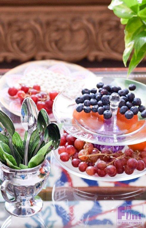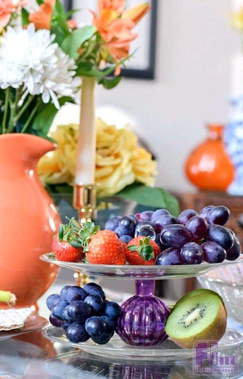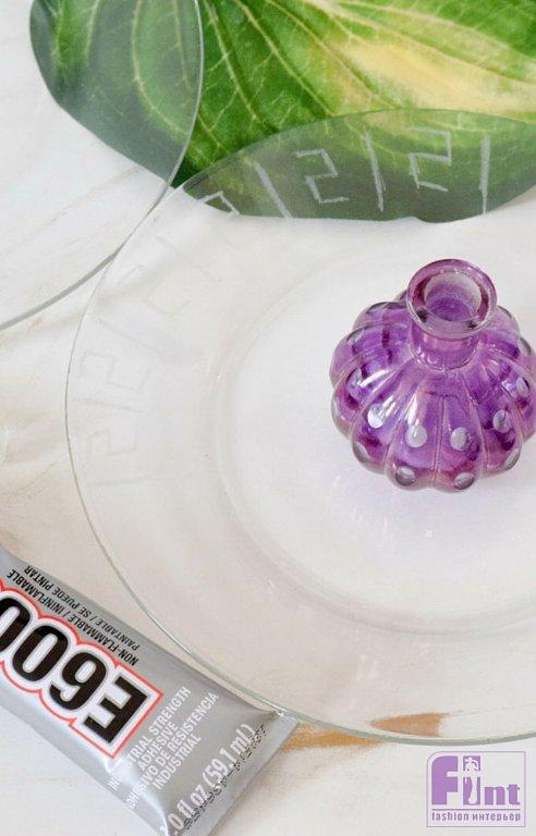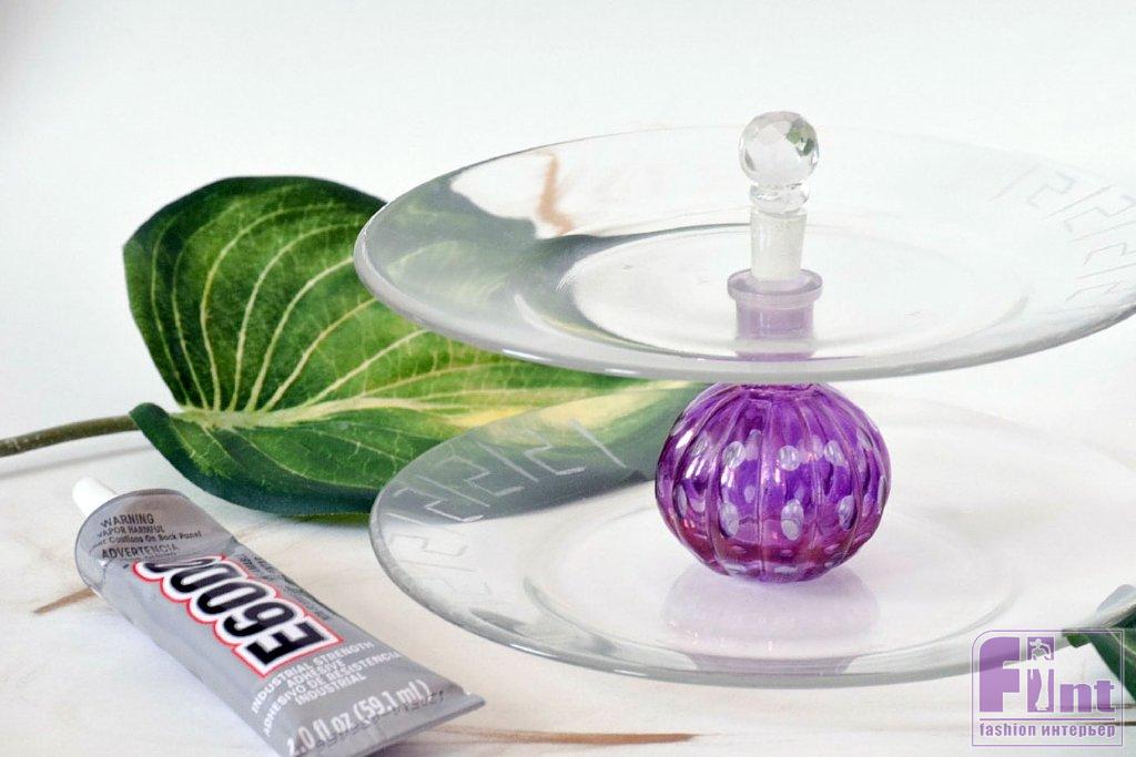 Необычное двухъярусное блюдо-этажерка из обычных тарелок и старого флакона от духов