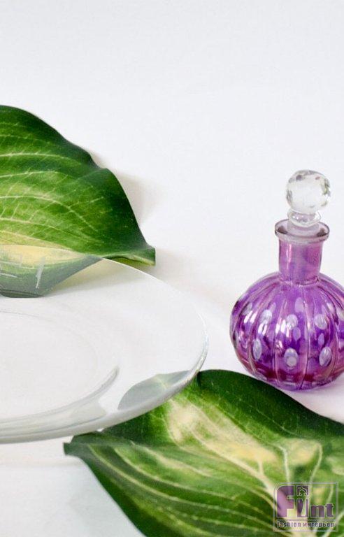 Мы использовали флакон для духов в марокканском стиле, который достался нам по наследству. Вы можете использовать похожий флакон, который найдёте дома, или приобрести аналогичный пустой флакон на маркетплейсах – там они стоят, в среднем, до 500 рублей. А ещё такие флаконы можно буквально за бесценок купить на различных блошиных рынках и ярмарках. Там встречаются поразительные экземпляры! Перед началом работы обязательно вымойте посуду и подготовьте прочную рабочую поверхность, чтобы ваше блюдо оставался неподвижным всю ночь для окончательного затвердевания клея.