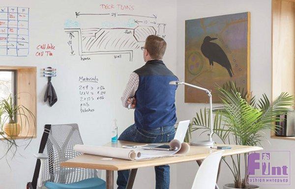 Это новый вид покрытия, который при нанесении на стены или любые другие гладкие поверхности внутри помещения: стены, двери, столешницы или мебель, превращает их в холст для творчества, блокнот для идей или доску объявлений. Надписи, нанесенные маркером на это покрытие, легко смываются, освобождая место для новых записей или изображений. После нанесения маркерного покрытия на поверхность открываются новые горизонты для самовыражения. Появляются новые возможности для изобразительного искусства. Так же можно создать оптимальную рабочую или учебную среду, упрощающую образовательные процессы и любой индивидуальный или коллективный умственный труд. Более того, на стене с маркерным покрытием можно не только рисовать, такую поверхность еще можно использовать в качестве экрана для проекций.