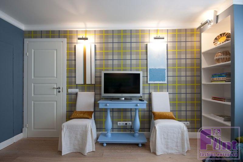 2. Крупная клетка больше подойдет для просторных гостиных; для небольшой комнаты остановите свой выбор на более мелком рисунке.