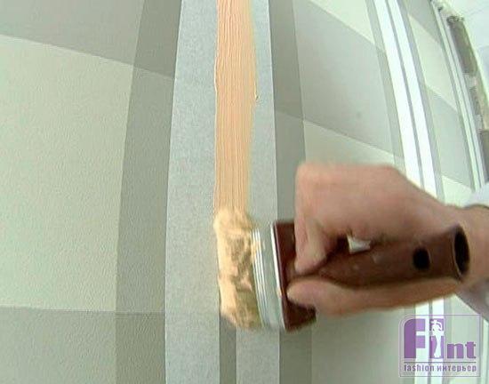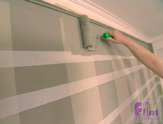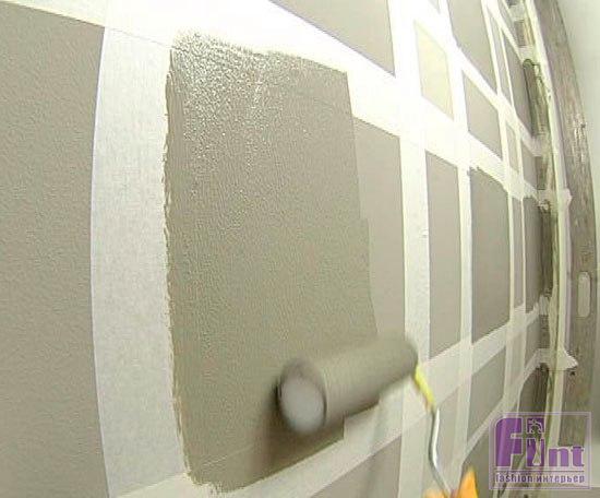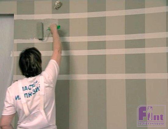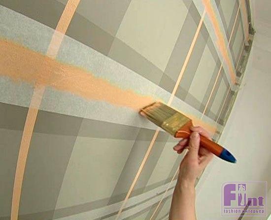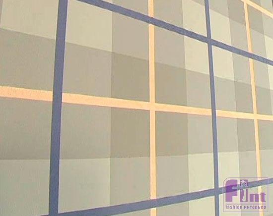 Роспись стены шотландской клеткой схожа с декорированием простой полоской, и здесь требуется не столько мастерство в покраске, сколько точность и аккуратность в разметке рисунка.