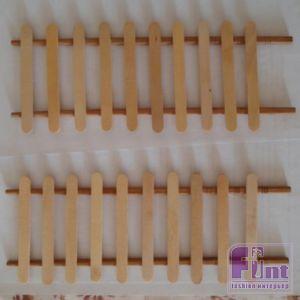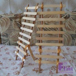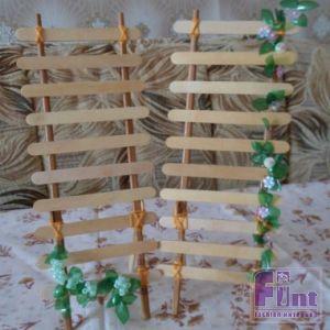Делаем подпорки, чтобы изделие могло стоять на горизонтальной поверхности. Для этого нам пригодится еще одна пара палочек от мороженого и крепкая нитка. Затем можете покрыть подставку лаком.