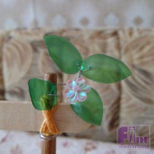 Пока лак сохнет, займемся декоративными элементами. Вырезаем из зеленой пластиковой бутылки небольшие листики и скручиваем из них веточки с помощью тонкой проволоки. Также можно использовать стразы, пайетки, бисер.