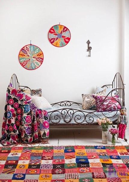 Пледы и разноцветные подушки. Это первое, что Вы видите, заходя в комнату, оформленную в стиле бохо. Самым щепетильным особам сразу хочется начать уборку, спрятать в шкафы небрежно раскиданные пледы, поправить подушки на диване и заменить покрывало, сшитое из хаотично набранных лоскутков, на более традиционное. Но остановитесь на мгновение и взгляните внимательнее. Это не беспорядочное мельтешение и переплетение разноцветных линий и пятен. Эта какофония цветов и форм обладает смыслом, правда не всегда и не сразу понятным простому обывателю.