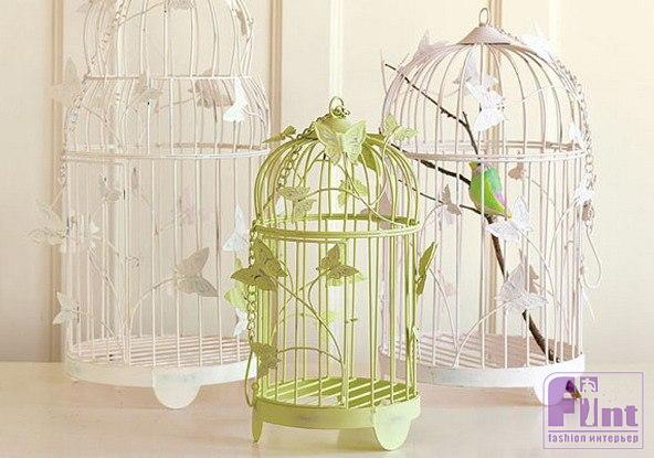 Лучше всего на общем фоне интерьера смотрятся классические птичьи клетки бронзового или белого цвета с различными винтажными украшениями. Часто используются клетки с эффектом "старины", в которых присутствуют и потертости, и поломанные или даже отсутствующие прутья. Такие клетки лучше всего подойдут для комнат в стиле прованс, шебби-шик или кантри.