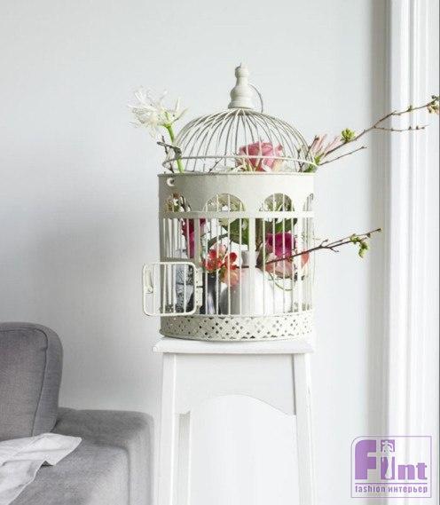 Никогда не стоит исключать тот момент, что вещи, которые уже нельзя использовать по назначению, можно применить при оформлении уникального стиля интерьера. Одним из таких вариантом может стать клетка для птиц. Если у вас когда-то был попугай или канарейка, но по каким-то причинам птицы не стало, а домик, в котором она жила остался, не стоит выбрасывать, казалось бы, не нужную клетку. Птичья клетка стала одним из тех аксессуаров, которые сейчас очень часто используют не только любители пернатых животных, но и приверженцы старины и классики.