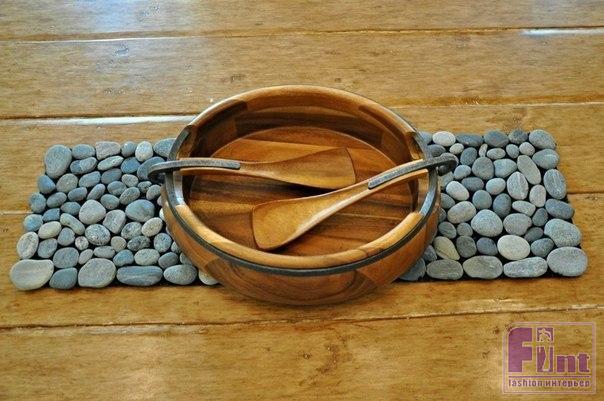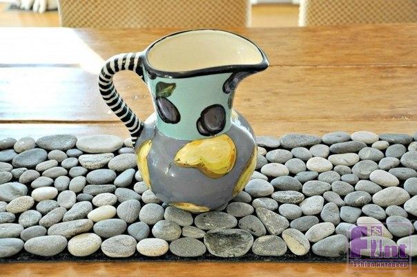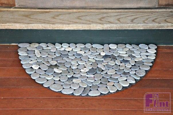 Дизайнеры советуют нам использовать в домах декор из экологически чистых материалов: так мы и природу бережем, и в доме благоприятную обстановку создаем, и следуем модным веяниям. К тому же эко-декор не требует ни больших финансовых затрат, ни больших училий для его изготовления. Интересный коврик можно получить при помощи речных камушков.