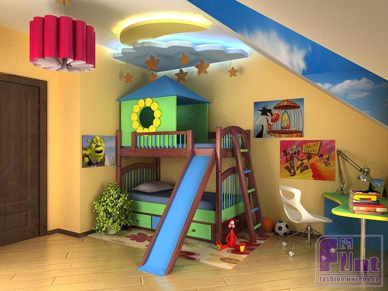 Какие следует предпочесть цвета для комнаты ребенка? Дети намного более активны, жизнелюбивы и жизнерадостны, нежели взрослые. Поэтому ребенка не стоит лишний раз искусственно стимулировать цветом. Следовательно, слишком яркие кислотные тона для детской не рекомендуются. Хорошим вариантом будут мягкие, слегка приглушенные цвета. Оттенок зависит от предпочтений ребенка. Если ребенок еще совсем маленький и не может определиться сам, то лучше для него выбрать какой-то нейтральный цвет: желтый, светло-оранжевый, кремовый, фисташковый и избежать этого типичного деления на девичьи, розовые, спальни и мальчишеские - синие.