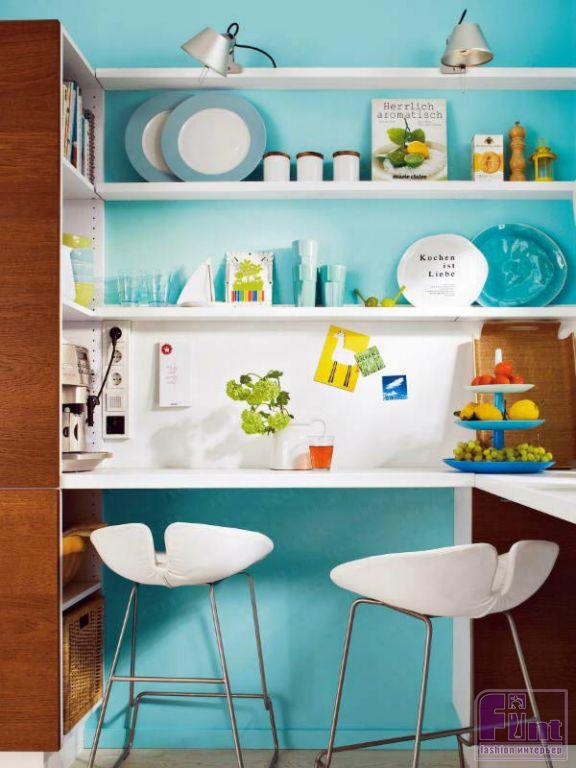 Что же касается стен, выкрашенных в цвет морской волны? Такой интерьер способствует задумчивому настрою, помогает сосредоточиться, располагает к медитативному состоянию. Удачным выбором будет окраска стен этим цветом в своем рабочем кабинете. Так же хорошо он подойдет для кухни, даже самой небольшой. Поскольку Ваша кухня в такой расцветке сама по себе уже будет выглядеть нетривиально, так еще и цвет создаст особую, неповторимую атмосферу, в которую захочется окунаться вновь и вновь Вам, Вашим домочадцам и друзьям. А вот для спальни или гостиной бирюзовый цвет выбирать не стоит, поскольку релаксации он совершенно не способствует. К тому же, в спальню всегда хочется чего-то теплого, уютного и родного, чтобы можно было с порога окунуться в атмосферу, способствующую отдыху.