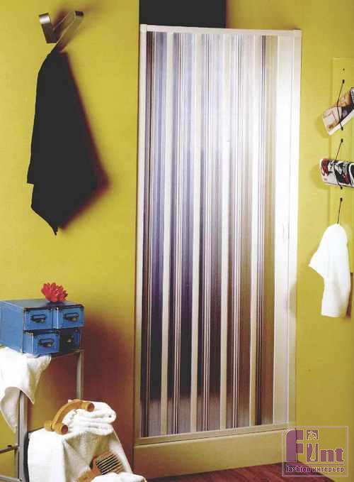 Дверь-гармошка состоит из отдельных вертикальных панелей, которые скреплены друг с другом небольшими петлями. Нижний край двери монтируется к косяку проема, а верх – к планке. Благодаря шарикоподшипникам, которые применяются в конструкции, скольжение двери осуществляется легко и бесшумно. Чаще всего дверь состоит из трех-четырех секций, но, как правило, в комплектации присутствуют дополнительные панели, на случай, если дверной проем имеет нестандартные размеры.