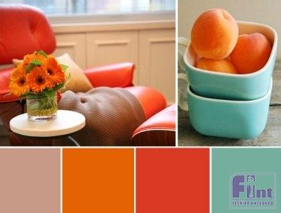 В минималистических интерьерах чаще всего используется сочетание оранжевого с белым, в этнических — с теплыми оттенками зеленого и синего. Если вы хотите уравновесить яркость оранжевого, используйте спокойные оттенки серого и бежевого цветов.