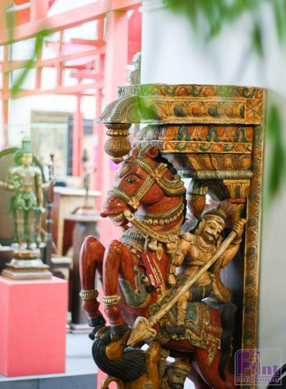Восточный интерьер - это, в первую очередь, изобилие декора: украшений, резных спинок, разноцветных подушек, статуэток и, конечно, ваз. Атмосфера самого помещения, царящий в нем запах благовоний, приглушенные звуки восточных мотивов и приветливый персонал – сочетание всего этого навевает истинно восточное сказочное настроение. Небольшая, на первый взгляд, экспозиция полна деталями, каждую из которых хочется как можно тщательнее рассмотреть и изучить, попробовать пропустить через себя восточный колорит, спрятанный в каждой вещице. Насыщенные цвета, непростые узоры и витиеватые линии привлекают внимание и притягивают взгляд.
