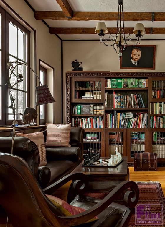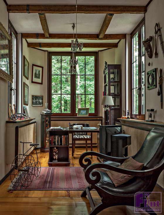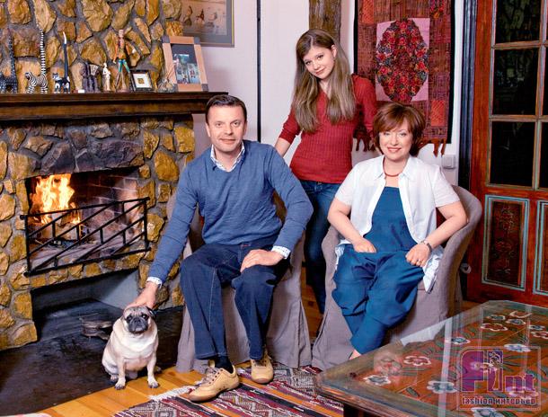«В этом доме мы живем уже 13 лет, – рассказывает супруга Парфенова Елена Чекалова. – Строился он и обставлялся постепенно. Причем здесь нет дорогих вещей. Часть мебели приобрели за небольшие деньги в торговом центре. Потом сняли с купленных шкафов стандартные двери и вставили те, что нашли в деревнях. Обшили кресла и диваны чехлами с узорами, даже лампочки раскрашивали. Все собственноручно доводили до ума. Я не люблю богатые дома, где все однообразно, по каталогу. В них нет индивидуальности. А у нас каждая деталь интерьера – целая история. Например, в Лёнином кабинете главное украшение – щит, который он привез из Эфиопии, когда снимал фильм «Живой Пушкин». Это были тяжелые съемки. Муж попал в плен к бандитам. Их группу обокрали, а потом даже хотели расстрелять. Они кое-как уговорили злоумышленников, чтобы их отпустили.