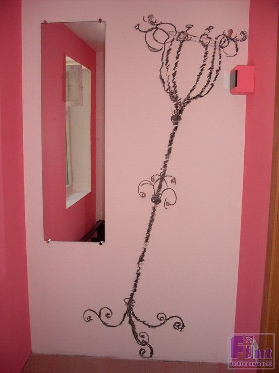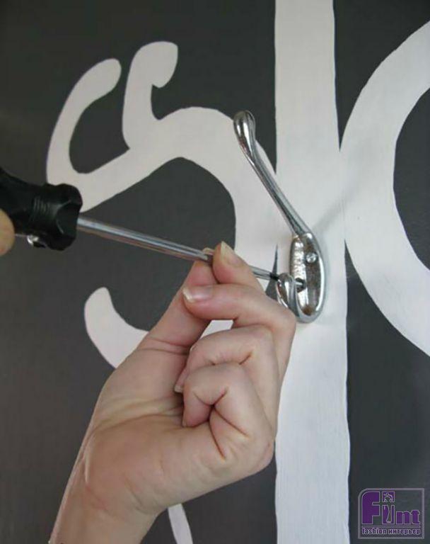 Вот такой оригинальной вешалкой для одежды можно украсить свою прихожую! Для разметки одинаковых округлых деталей рисунка можно использовать подходящие по диаметру банки, кастрюли и другие кухонные ёмкости. Безусловно, такая вешалка органично впишется не в каждый интерьер. Но в молодёжном интерьере - это будет вполне уместный и очень оригинальный элемент оформления жилья!
