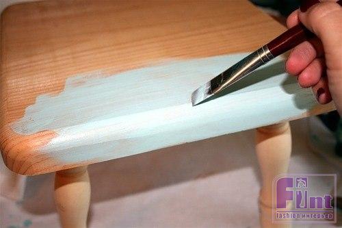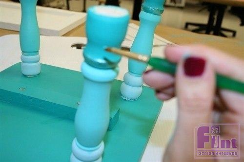 Боковые части крышки также красим в этот последний используемый цвет. Ножки раскрашиваем по своему усмотрению, в несколько разных оттенков голубого.