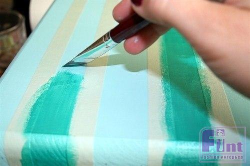 Теперь закрашиваем пространство через полосу краской голубой металлик. Или просто голубой краской более темного оттенка.