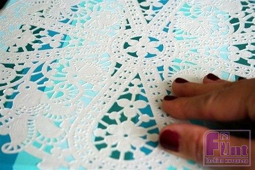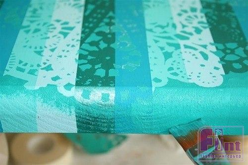 Когда высохнет – накладываем салфетку и кисточкой или губкой наносим еще один оттенок голубого.