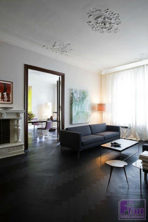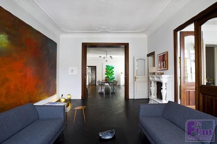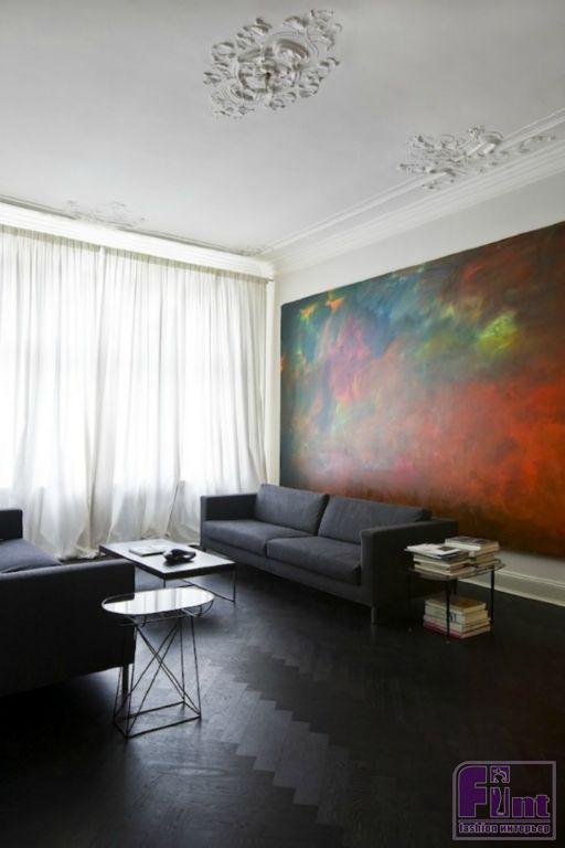 Четкие и строгие линии прекрасно подчеркивают мужественность хозяина дома, а большие яркие полотна на стенах — его неординарную личность и определенную смелость.