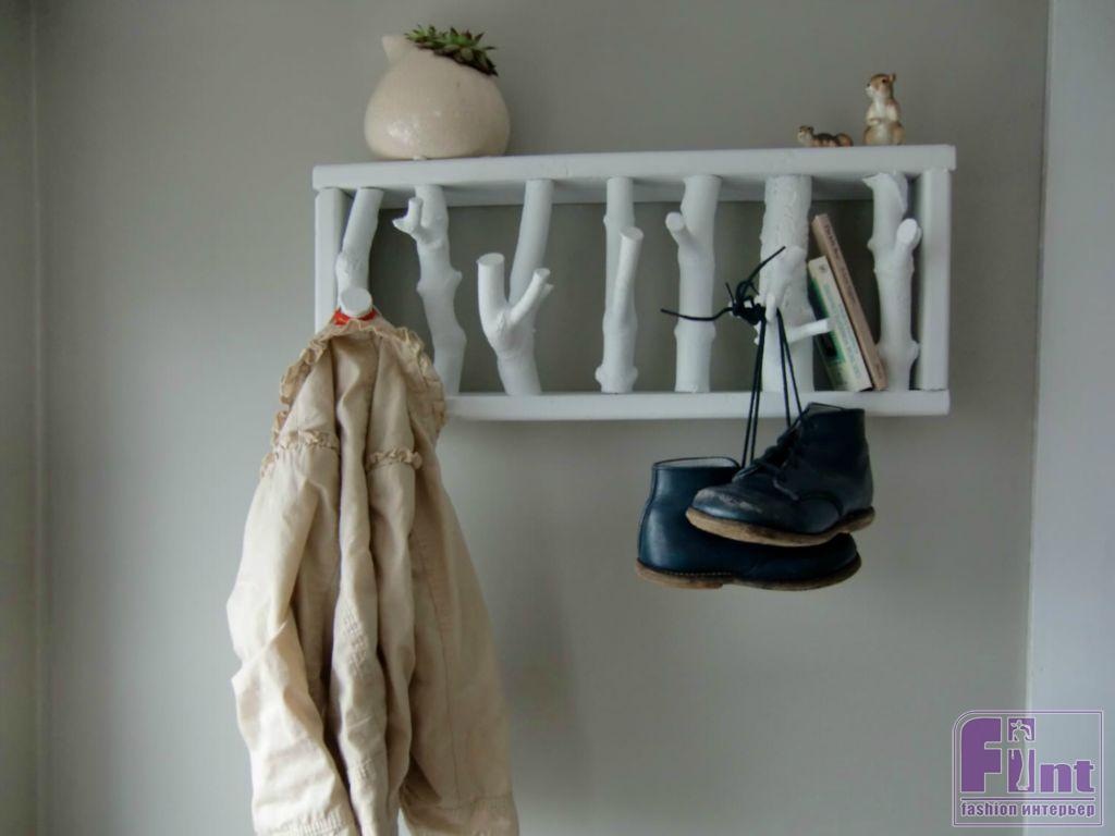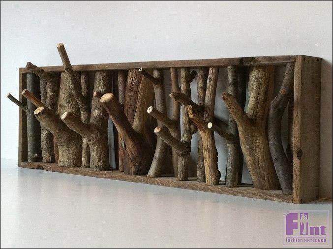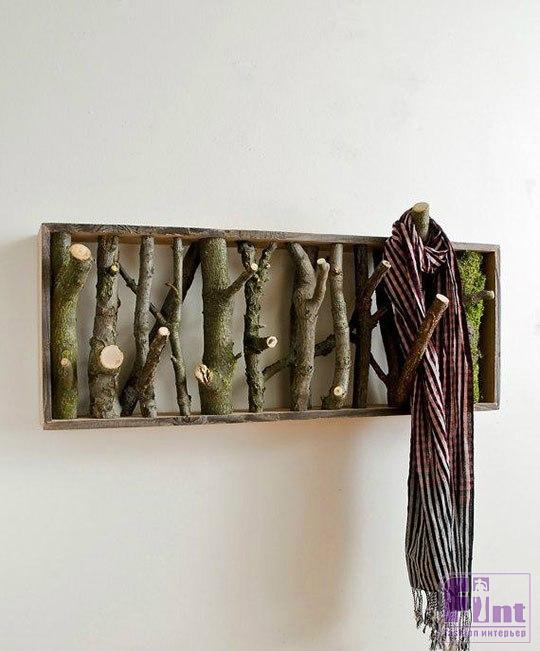 Для украшения интерьера подойдёт даже самые никчёмные, на первый взгляд, вещи. Например, кривые сучки обычных деревьев. Если приложить немного умения и вставить напиленные по определённому размеру живописные сучки в оригинальную "раму", сколоченную из 4 досок, то получится очень необычный и функциональный арт-объект! Немаловажно, что это будет не бесполезное "украшение", а вполне функциональная настенная вешалка!
