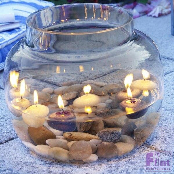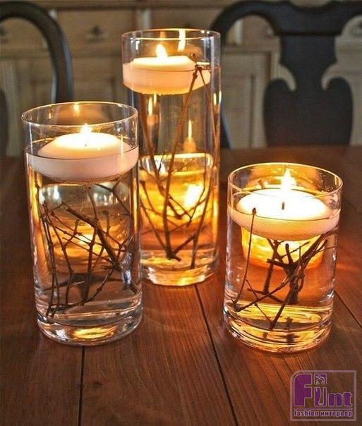 Вот такие удивительные по красоте и уровню романтичности "светильники" можно сделать за 5 минут из подручных средств! Чистая вода в высоком стеклянном стакане, пара цветочных бутонов или веточка от самого обычного дерева и плавающая свеча, соединённые вместе, дают потрясающий эффект!