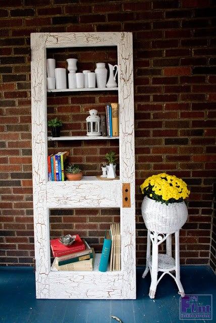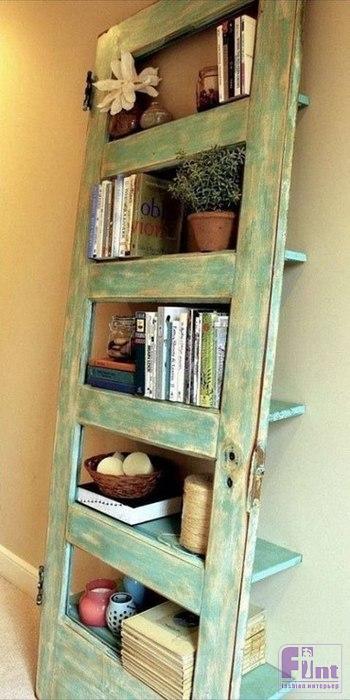 Мало места в комнате, прихожей или в кухне? Есть небольшой свободный уголок? Распилите старую дверь по длинной части полотна, соедините половинки под углом 90 градусов и повесьте полочки - угловой стеллаж готов! По тому же принципу можно сделать оригинальный полочный модуль. Прикрепить к двери деревянные полки, рейлинги, крючки, а оборотной частью присоединить к стене. Кстати, в этом случае дверь можно распилить поперек полотна и использовать на ту высоту, которая уместна.