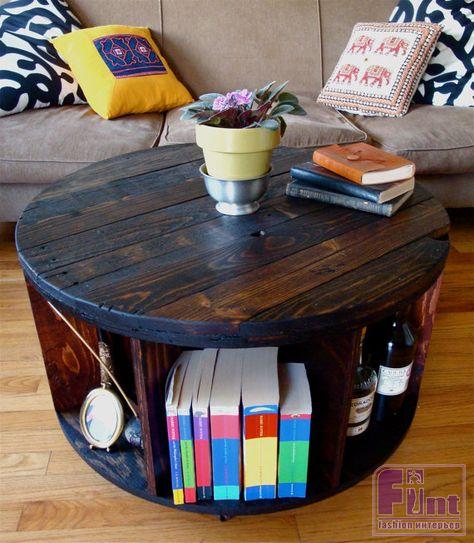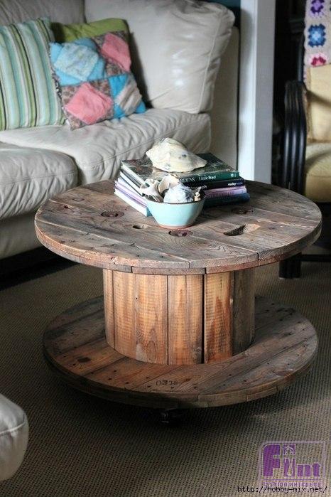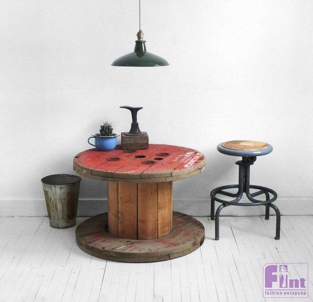Изюминка использования кабельного барабана в интерьере состоит в том, что Вам не придется пилить, резать и сверлить катушку, чтобы сделать из нее табурет, обеденный или журнальный круглый столик. Достаточно будет очистить ее от грязи, пыли, заусенцев и поставить ее в комнате. Чтобы столик не выглядел достаточно грубовато, как говорится в деревенском стиле, рекомендуется украсить его различными способами: покрасить краской или лаком, оклеить декоративной бумагой, нарисовать красивый рисунок и т.д.
