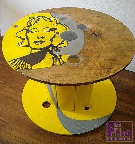 Изюминка использования кабельного барабана в интерьере состоит в том, что Вам не придется пилить, резать и сверлить катушку, чтобы сделать из нее табурет, обеденный или журнальный круглый столик. Достаточно будет очистить ее от грязи, пыли, заусенцев и поставить ее в комнате. Чтобы столик не выглядел достаточно грубовато, как говорится в деревенском стиле, рекомендуется украсить его различными способами: покрасить краской или лаком, оклеить декоративной бумагой, нарисовать красивый рисунок и т.д.