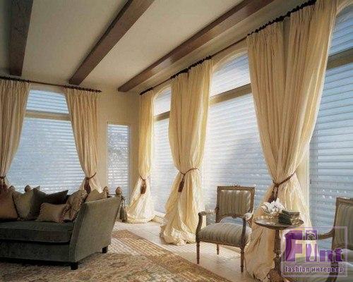Очень часто эти шторы используются как деталь в композиции с тюлем, портьерами или ламбрекеном. Особенно гармонично такое оформление выглядит в роскошных спальнях или гостиных, а также в различных торжественных залах.