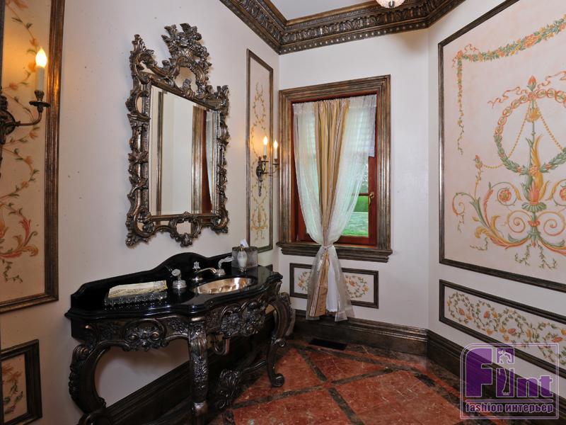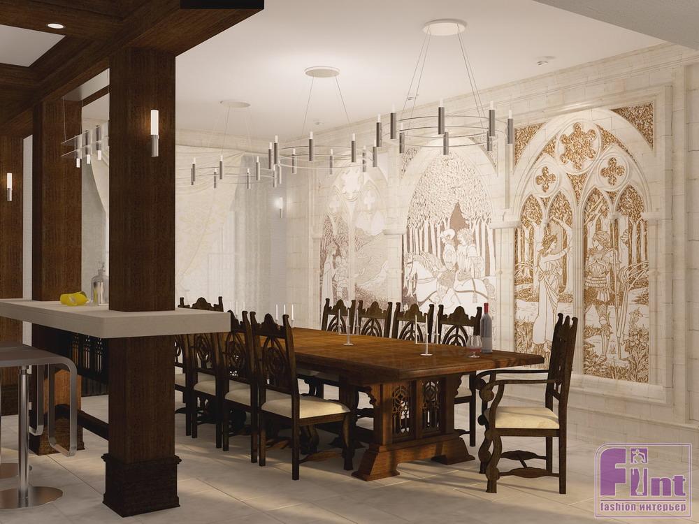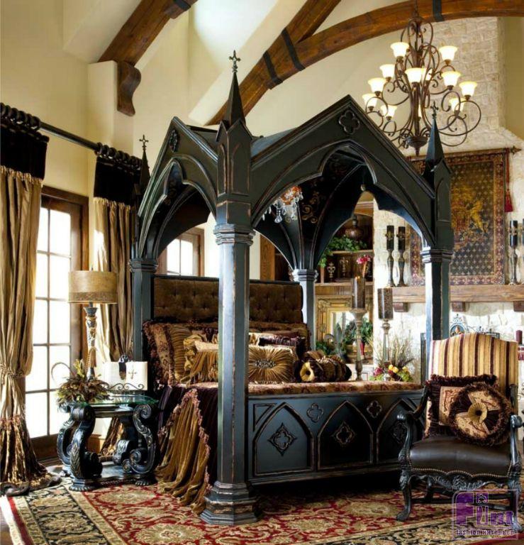 А вот стены в стиле готика – далеко не самый важный элемент. Основное требование к ним – легкость и однотонность. В качестве декоративных элементов стены украшаются яркой росписью или настенными гобеленами. Полы дощатые или каменные. На потолке возможна декоративная роспись.