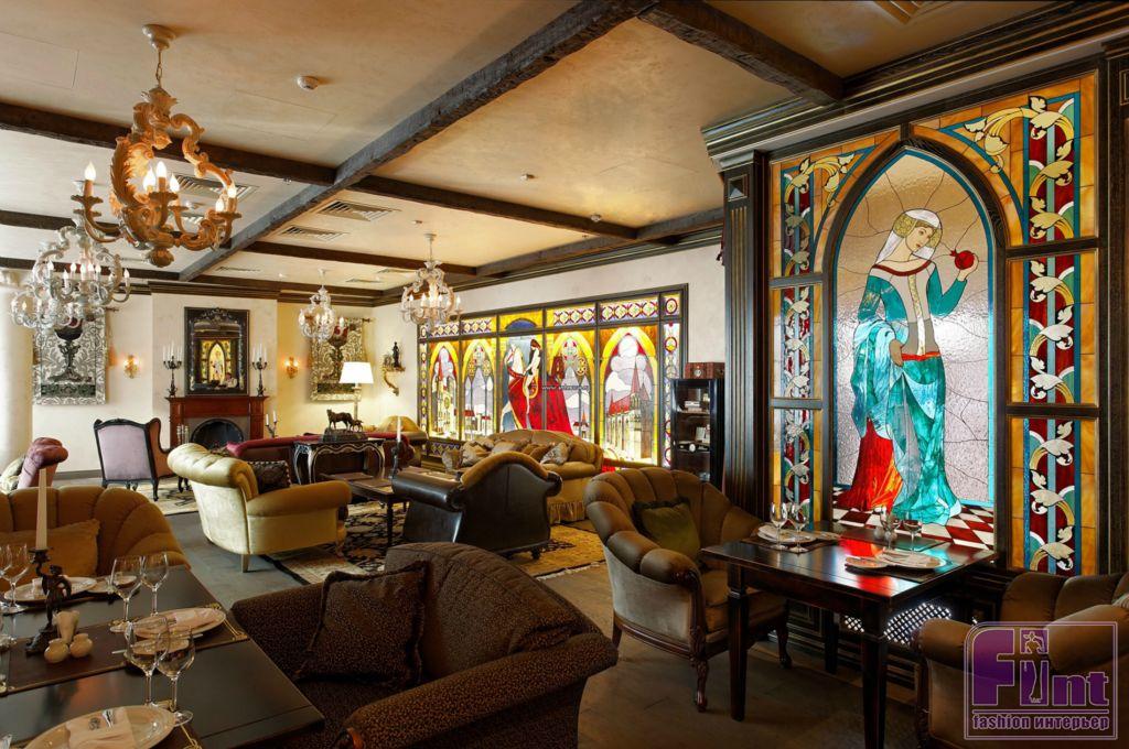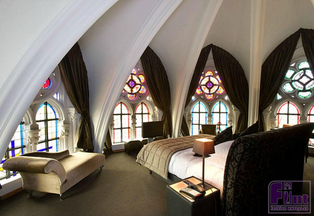 Неизменный атрибут готики – огромные окна, стрельчатые своды и многоцветные витражи. Наивысшей целью всего этого является доступ в помещение максимально возможного количества света, создание взвешенной, воздушной обстановки. Витражи и сложные формы сводов придают интерьеру изящества и величия.