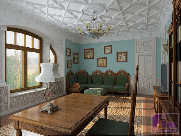 В готических интерьерах практически отсутствуют картины. Большое распространение получает резьба по камню и дереву, обработка слоновой кости, керамические и стеклянные изделия. Исторические атрибуты поражают фантазией изобретателя и его блестящим мастерством. Тщательность отделки и проработанность деталей вызывают только наивысшую оценку со стороны ценителей.
