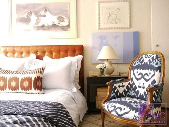Элегантности вашему помещению добавит икат в синем цвете. При этом оттенок синего цвета не играет особой роли. Для более оригинального и роскошного варианта нужно брать более цветной икат с применением горячих цветовых гамм, где будут достаточно сложные узоры.