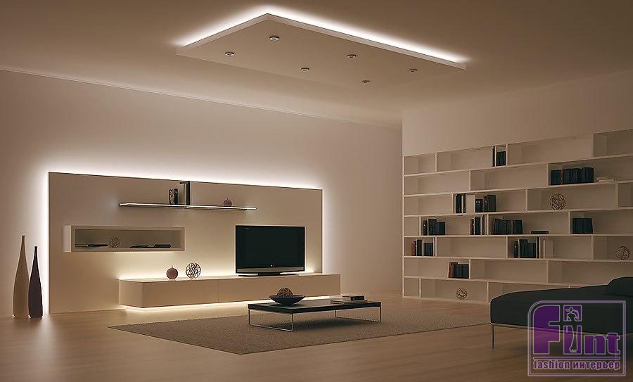 Основная функция светодиодов в интерьере – это подсветка для выделения некоторых зон и интерьерных элементов: например, для выделения ТВ-зоны в гостиной, кухонного фартука в кухне, ниш в стенах, подиумов.
