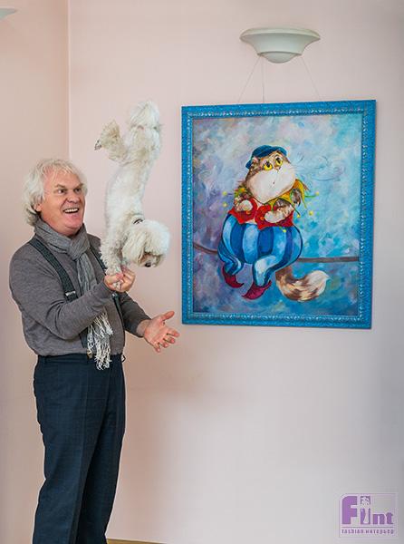 Ю.К. Работы с кошками принадлежат кисти дочери Кати. Она даже кухню украсила несколькими нарисованными прямо на стене кошками. Все коты у нее со своим характером. Многие картины Кати находятся в частных собраниях в разных странах. Когда обустраивали дом, то отвели дочери под мастерскую комнату на третьем этаже с видом на лес. Талант художника ей передался от деда, моего отца, который, работая обычным шофером, виртуозно владел кистью. В гостиной у нас висит его картина, где изображены три охотника. И в принципе у нас дома много именно декоративно-художественных вещей. Что-то мы покупали сами, а что-то дарят, вроде мелочей с изображением кошек или моего бюста на подоконнике (улыбается).