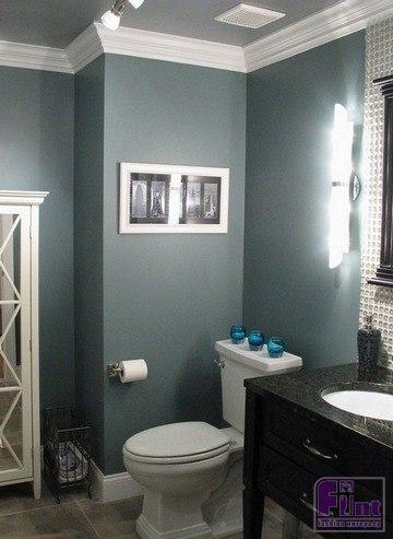 Что касается цвета краски, то правила здесь простые. Чем светлее и просторнее помещение — тем темнее могут быть стены. И наоборот — для очень маленького санузла без окна предпочтительнее светлая краска. Разумеется, вы можете проигнорировать эти постулаты и выкрасить компактную ванную в любой понравившийся цвет, пусть даже в черный. Это ваше право, но вы должны знать о возможных последствиях — таких как темнота, мрачность, холодность, ощущение сближения стен.