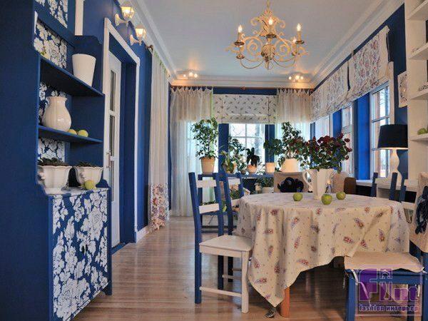 Выбирая интерьеры под гжель, можно ничем не ограничивать полет своей фантазии. Главной идеей стиля считается использование природной тематики.