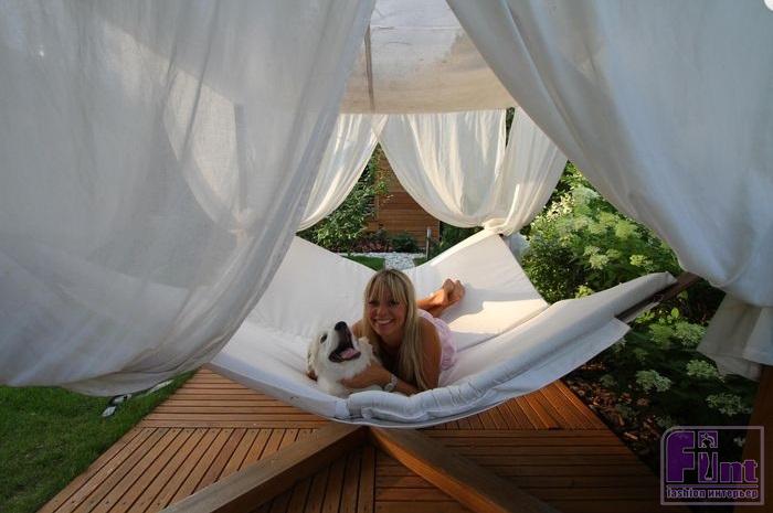 - Может кому-то это покажется не совсем практичным – что у меня во дворе стоят белоснежные пуфы, висит белый гамак, – говорит хозяйка. – Но мне белый цвет доставляет эстетическое удовольствие! Лучше я лишний раз все почищу и помою. Я стараюсь содержать двор в идеальном порядке. Когда начинается дождь – все покрываем специальной пленкой, а на зиму убираем мебель со двора в дом.