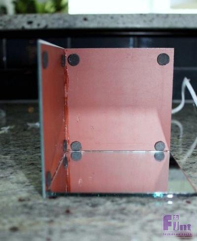 Пробковую подложку, кружочки готовые или нарезанные своими руками, приклеиваем горячим клеем. Это у нас будет нижняя часть кашпо. Далее склеиваем все зеркала горячим клеем. К внутренним сторонам зеркал также приклеиваем кружочки из пробковой подложки или резинового коврика. Делать это нужно, чтобы цветочный горшок не касался зеркал. Поэтому, если цветочный горшок будет у Вас круглый - приклеивайте эти "аммортизаторы" по центру каждой зеркальной стороны. Если квадратный - по две на каждую из сторон.